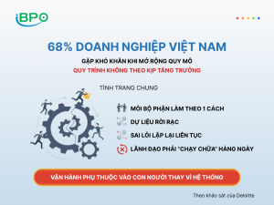 Theo khảo sát của Deloitte, 68% doanh nghiệp Việt Nam thừa nhận gặp khó khăn khi mở rộng quy mô vì “quy trình không theo kịp tăng trưởng”. Tình trạng phổ biến là: mỗi bộ phận làm theo một cách, dữ liệu rời rạc, sai lỗi lặp lại liên tục, lãnh đạo phải “chạy chữa” … Đọc tiếp Chuẩn Hóa Quy Trình: Từ Chữa Cháy Đến Tăng Trưởng Bền Vững.