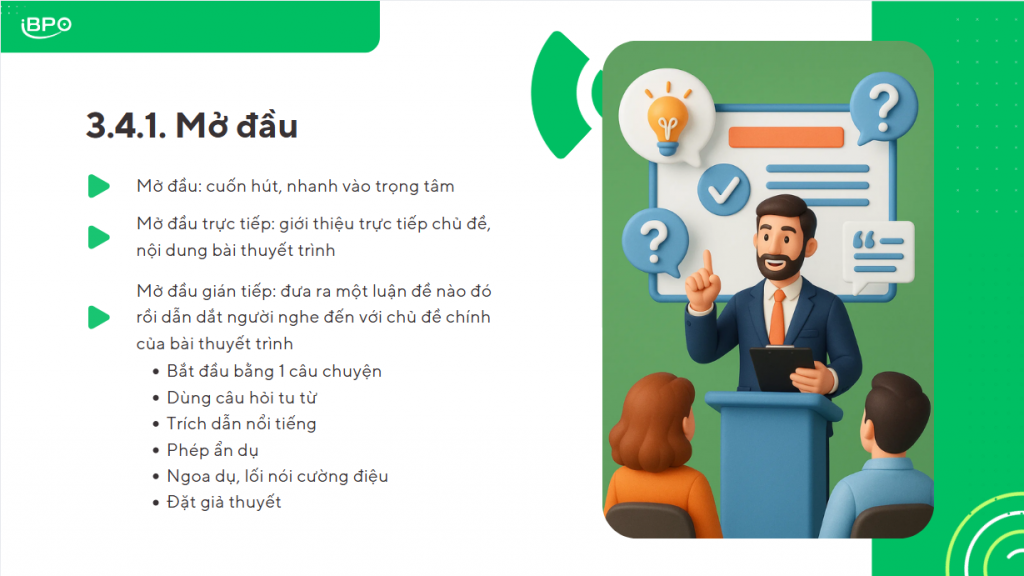 Thuyết trình không chỉ là một kỹ năng cần thiết trong công việc mà còn là công cụ giao tiếp quan trọng trong cuộc sống hàng ngày. Đặc biệt tại iBPO – đơn vị hoạt động trong lĩnh vực tư vấn quy trình, hệ thống quản lý ISO và chuyển đổi số, việc trình bày mạch lạc, kể chuyện thu hút và giao tiếp hiệu quả với khách hàng là yếu tố then chốt trong mỗi dự án.
