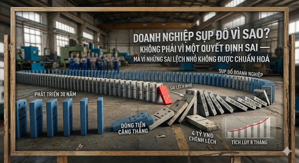 Một doanh nghiệp sản xuất quy mô 80 nhân sự từng tìm đến chúng tôi sau khi dòng tiền bất ngờ rơi vào trạng thái căng thẳng. Không có cú sốc thị trường. Không mất khách hàng lớn. Không có biến cố truyền thông. Vấn đề bắt đầu từ một điều rất nhỏ:Một bước đối […]