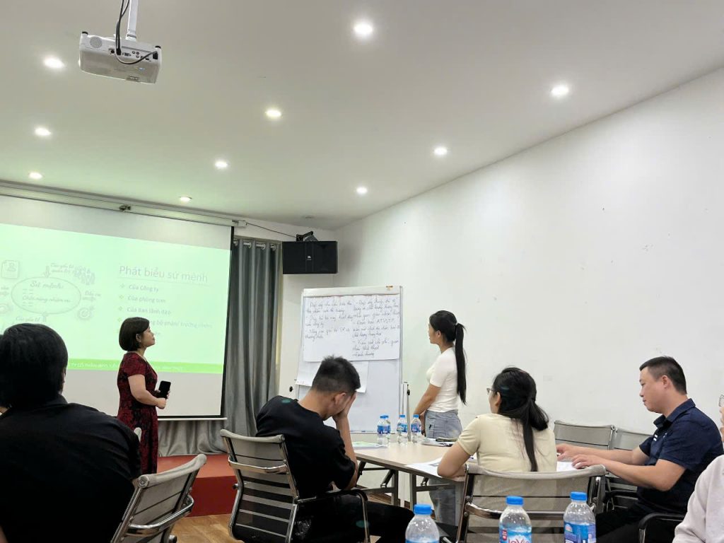Không khí lớp học diễn ra sôi nổi, mang tính tương tác và phản biện cao. Các học viên – là quản lý chủ chốt tại các bộ phận – đã thẳng thắn chia sẻ những tình huống thực tế: phân công nhiệm vụ thiếu rõ ràng, mục tiêu chưa gắn kết với hành vi, hay khó khăn khi truyền cảm hứng cho nhân viên trẻ…
